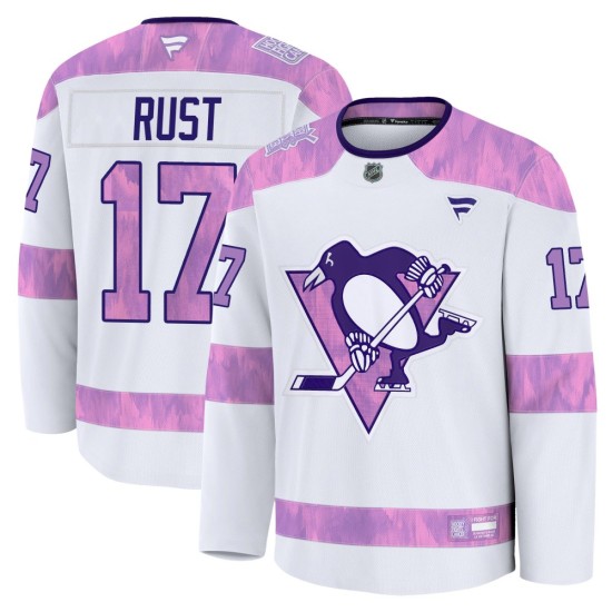 Show them you are the #1 Pittsburgh Penguins fan when you wear this Men's Pittsburgh Penguins Bryan Rust Fanatics Premium 2024 Hockey Fights Cancer Practice Jersey - White! Featuring Pittsburgh Penguins graphics, this jersey will keep you comfortable and full of team spirit. It is a must-have for fans of any age!