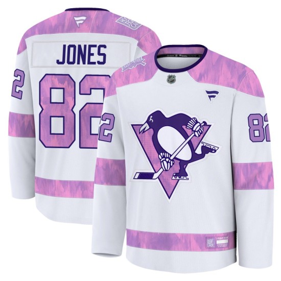 Show them you are the #1 Pittsburgh Penguins fan when you wear this Men's Pittsburgh Penguins Caleb Jones Fanatics Premium 2024 Hockey Fights Cancer Practice Jersey - White! Featuring Pittsburgh Penguins graphics, this jersey will keep you comfortable and full of team spirit. It is a must-have for fans of any age!