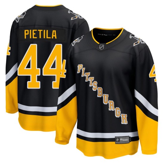 Show them you are the #1 Pittsburgh Penguins fan when you wear this Women's Pittsburgh Penguins Chase Pietila Fanatics Branded Premier 2021/22 Alternate Breakaway Player Jersey - Black! Featuring Pittsburgh Penguins graphics, this jersey will keep you comfortable and full of team spirit. It is a must-have for fans of any age!