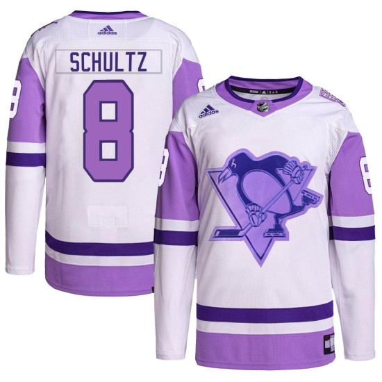 Prove you are the #1 Pittsburgh Penguins fan with this Men's Pittsburgh Penguins Dave Schultz Adidas Authentic Hockey Fights Cancer Primegreen Jersey - White/Purple! This jersey is perfect for the Pittsburgh Penguins fan who wants a great new way to show some spirit for the Penguins.