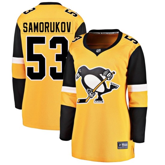 Show them you are the #1 Pittsburgh Penguins fan when you wear this Women's Pittsburgh Penguins Dmitri Samorukov Fanatics Branded Breakaway Alternate Jersey - Gold! Featuring Pittsburgh Penguins graphics, this jersey will keep you comfortable and full of team spirit. It is a must-have for fans of any age!