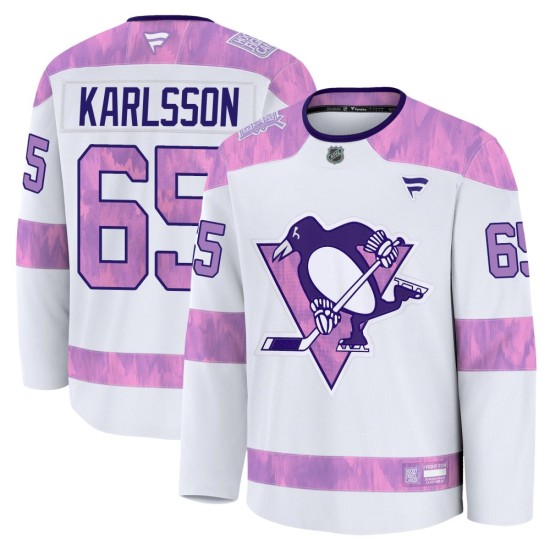 Show them you are the #1 Pittsburgh Penguins fan when you wear this Men's Pittsburgh Penguins Erik Karlsson Fanatics Premium 2024 Hockey Fights Cancer Practice Jersey - White! Featuring Pittsburgh Penguins graphics, this jersey will keep you comfortable and full of team spirit. It is a must-have for fans of any age!