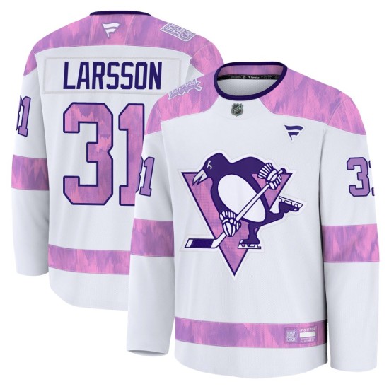 Show them you are the #1 Pittsburgh Penguins fan when you wear this Men's Pittsburgh Penguins Filip Larsson Fanatics Premium 2024 Hockey Fights Cancer Practice Jersey - White! Featuring Pittsburgh Penguins graphics, this jersey will keep you comfortable and full of team spirit. It is a must-have for fans of any age!