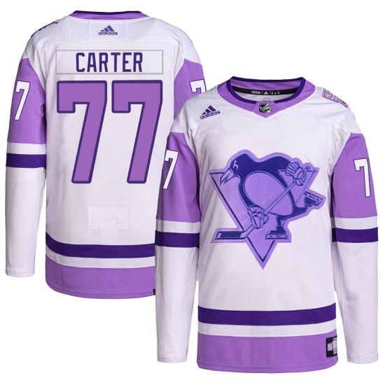 Prove you are the #1 Pittsburgh Penguins fan with this Youth Pittsburgh Penguins Jeff Carter Adidas Authentic Hockey Fights Cancer Primegreen Jersey - White/Purple! This jersey is perfect for the Pittsburgh Penguins fan who wants a great new way to show some spirit for the Penguins.