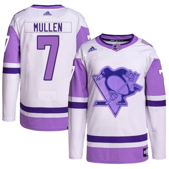 Prove you are the #1 Pittsburgh Penguins fan with this Men's Pittsburgh Penguins Joe Mullen Adidas Authentic Hockey Fights Cancer Primegreen Jersey - White/Purple! This jersey is perfect for the Pittsburgh Penguins fan who wants a great new way to show some spirit for the Penguins.