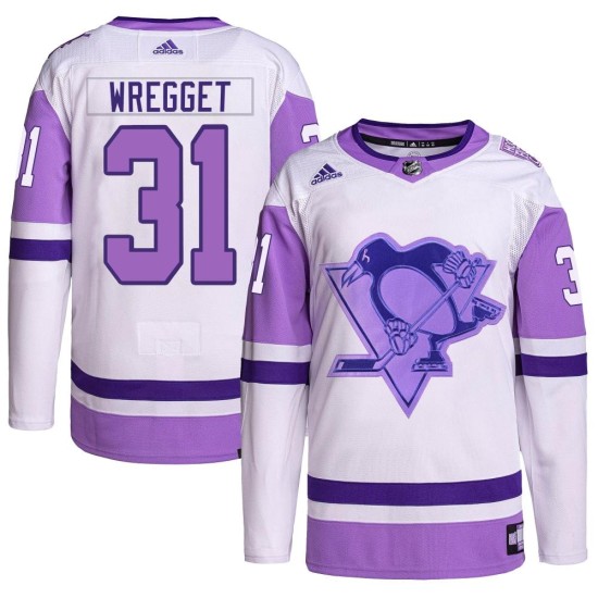 Prove you are the #1 Pittsburgh Penguins fan with this Youth Pittsburgh Penguins Ken Wregget Adidas Authentic Hockey Fights Cancer Primegreen Jersey - White/Purple! This jersey is perfect for the Pittsburgh Penguins fan who wants a great new way to show some spirit for the Penguins.