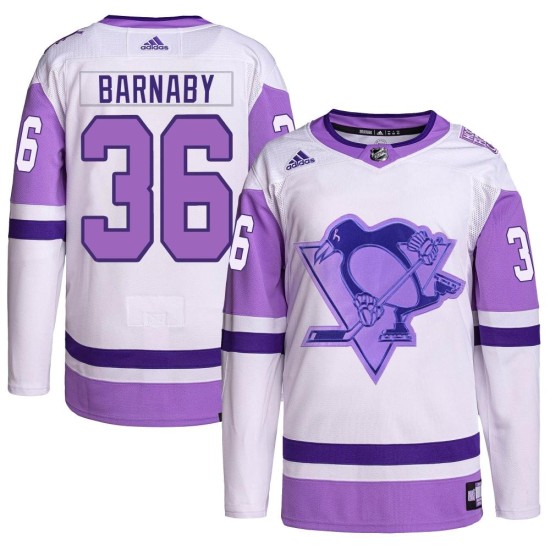 Prove you are the #1 Pittsburgh Penguins fan with this Men's Pittsburgh Penguins Matthew Barnaby Adidas Authentic Hockey Fights Cancer Primegreen Jersey - White/Purple! This jersey is perfect for the Pittsburgh Penguins fan who wants a great new way to show some spirit for the Penguins.
