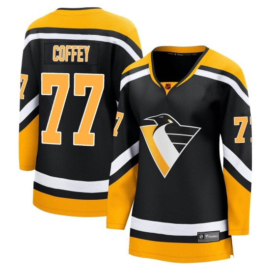 Show them you are the #1 Pittsburgh Penguins fan when you wear this Women's Pittsburgh Penguins Paul Coffey Fanatics Branded Breakaway Special Edition 2.0 Jersey - Black! Featuring Pittsburgh Penguins graphics, this jersey will keep you comfortable and full of team spirit. It is a must-have for fans of any age!