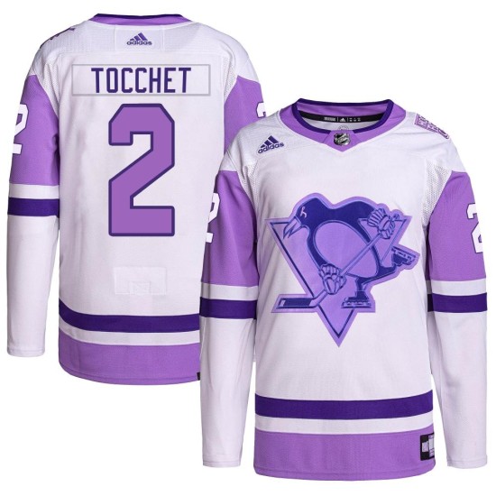 Prove you are the #1 Pittsburgh Penguins fan with this Men's Pittsburgh Penguins Rick Tocchet Adidas Authentic Hockey Fights Cancer Primegreen Jersey - White/Purple! This jersey is perfect for the Pittsburgh Penguins fan who wants a great new way to show some spirit for the Penguins.