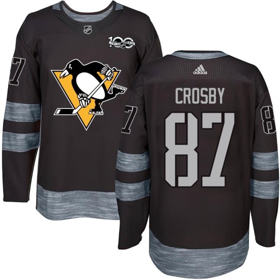 Prove you are the #1 Pittsburgh Penguins fan with this Men's Pittsburgh Penguins Sidney Crosby Authentic 1917-2017 100th Anniversary Jersey - Black! This jersey is perfect for the Pittsburgh Penguins fan who wants a great new way to show some spirit for the Penguins. It features authentic graphics and logos along with vibrant colors and realistic tackle...