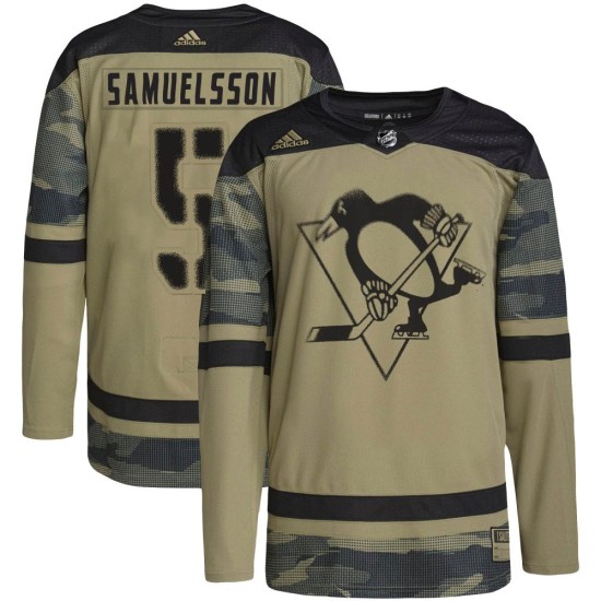 Prove you are the #1 Pittsburgh Penguins fan with this Men's Pittsburgh Penguins Ulf Samuelsson Adidas Authentic Military Appreciation Practice Jersey - Camo! This jersey is perfect for the Pittsburgh Penguins fan who wants a great new way to show some spirit for the Penguins.
